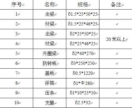 不銹鋼內浮盤主要材料明細表